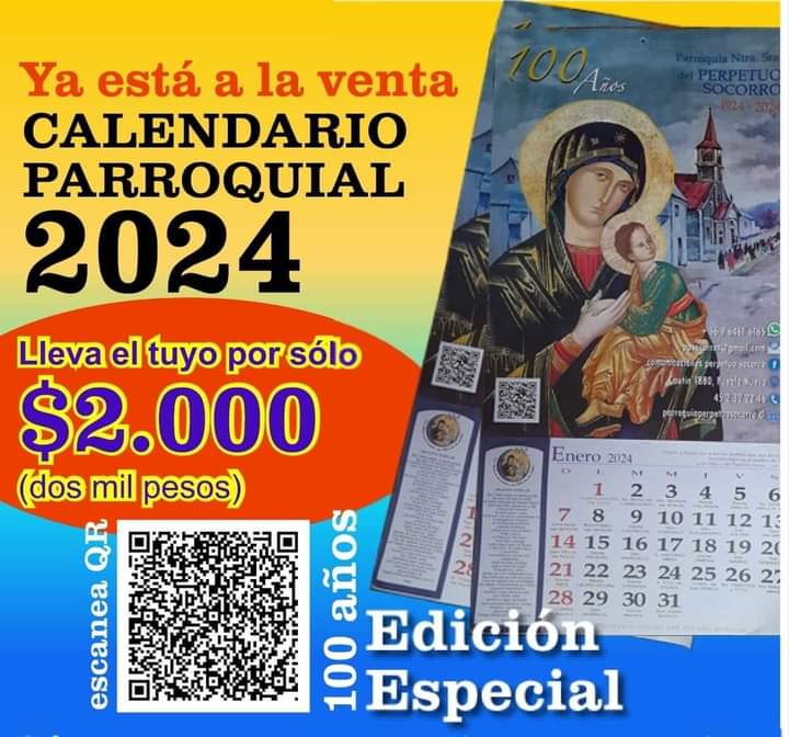 Estimada Comunidad Ya se encuentran disponible el Calendario Parroquial 2024, Edición Especial 100 años. Se pueden adquirir por $2.000 en la oficina parroquial y en las distintas comunidades. Les recordamos…